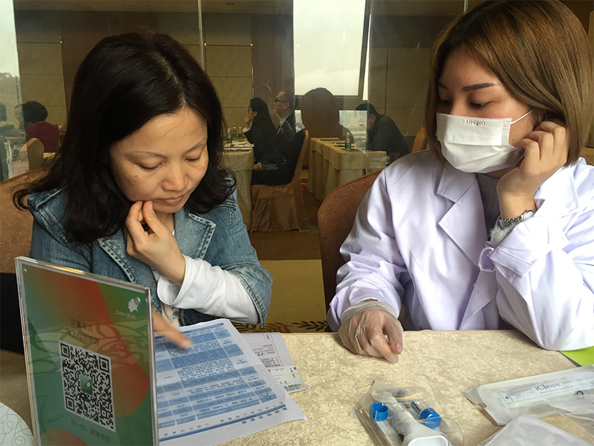 (東城華夏保險)正在谘詢基因檢測準備采樣的客戶
