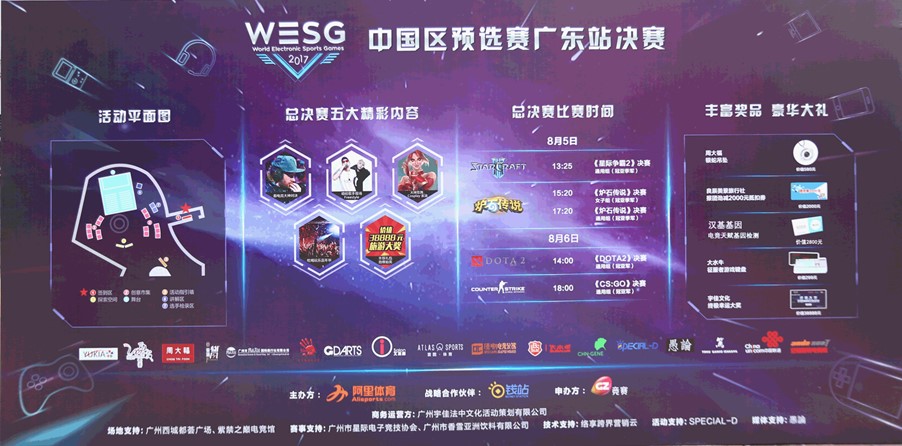 “WESG(世界電子競技運動會)”是由阿裏體育主辦的國際性大型電子競技賽事,其中WESG2017年中國區預選賽廣東站將於8月4、5、6三日火熱開賽。4個比賽項目都是經典熱門大作:《DOTA2》《CS:GO》《星際爭霸2》和《爐石傳說》。其中,8月4-5日將在紫禁之巔電競館進行海選賽,8月5-6日將在廣州西城都薈南廣場進行決賽。