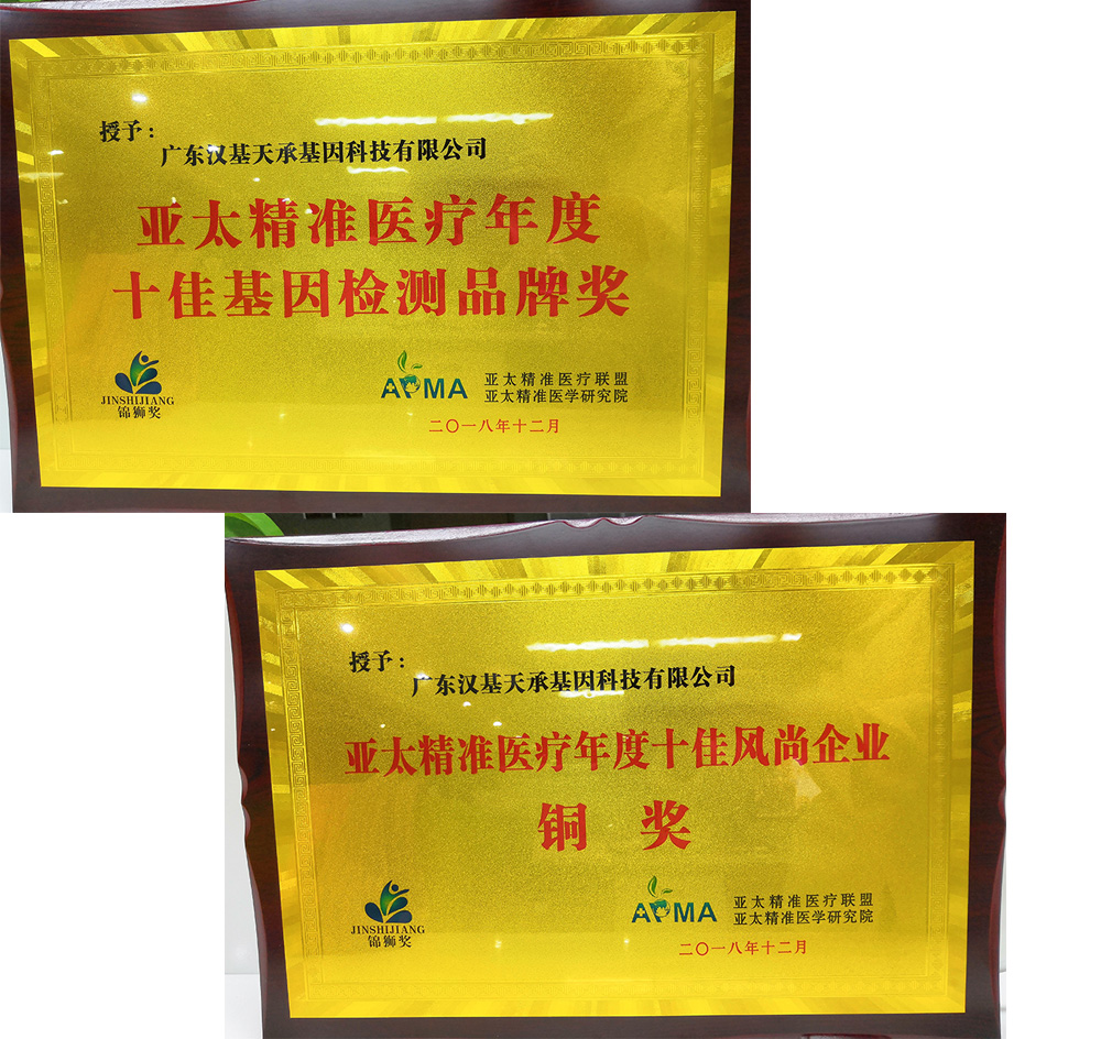 漢基基因的基因檢測產品、健康服務質量一直在行業領先,公(gong)司(si)擁(yong)有(you)頂(ding)尖(jian)的(de)基(ji)因(yin)組(zu)學(xue)及(ji)臨(lin)床(chuang)醫(yi)學(xue)領(ling)域(yu)的(de)專(zhuan)家(jia)團(tuan)隊(dui),擁(yong)有(you)自(zi)主(zhu)創(chuang)新(xin)的(de)基(ji)因(yin)比(bi)對(dui)專(zhuan)利(li)技(ji)術(shu)及(ji)數(shu)據(ju)處(chu)理(li)和(he)分(fen)析(xi)方(fang)法(fa),並(bing)擁(yong)有(you)自(zi)主(zhu)知(zhi)識(shi)產(chan)權(quan)的(de)百(bai)彙(hui)協(xie)和(he)分(fen)子(zi)醫(yi)學(xue)聯(lian)合(he)實(shi)驗(yan)室(shi),贏得了政府和機構的高度認可。今年再獲國家高新科技企業認證、2018亞太精準醫療年度十佳基因檢測品牌、 精準醫療年度十佳健康管理機構、精準醫療年度最佳實驗室創新成果等獎項。