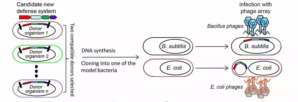 因此,研究者們將要進一步在缺少免疫係統的大腸杆菌菌株str. MG1655以及枯草芽孢杆菌菌株str. BEST7003(類似缺少免疫係統的小白鼠)中進行檢驗,把ba這zhe些xie候hou選xuan免mian疫yi係xi統tong基ji因yin加jia入ru到dao缺que少shao免mian疫yi係xi統tong的de上shang述shu兩liang株zhu細xi菌jun中zhong,然ran後hou加jia入ru噬shi菌jun體ti,觀guan察cha能neng不bu能neng抗kang擊ji噬shi菌jun體ti的de殺sha傷shang,若ruo是shi能neng夠gou抗kang擊ji噬shi菌jun體ti,那na麼me,這zhe個ge候hou選xuan免mian疫yi係xi統tong就jiu是shi真zhen正zheng的de細xi菌jun免mian疫yi係xi統tong了le,相反,若不能抗擊噬菌體,則表明導入的這個候選基因家族不是細菌免疫係統。
