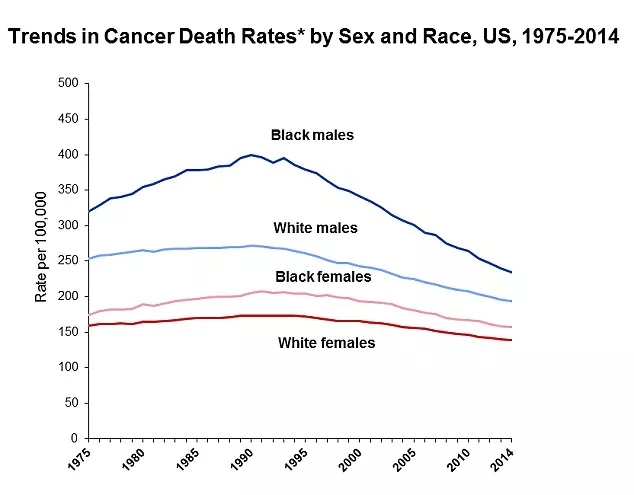 癌症死亡率趨勢圖:不同種族和性別人群都呈下降趨勢