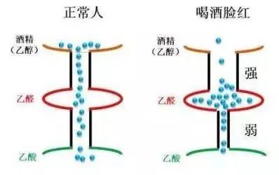 如果乙醛脫氫酶結構異常,不能有效轉化乙醛,就會導致乙醛大量堆積,乙醛的含量增高就會產生很多不良反應,一是臉紅,因為它會擴張血管,二是會造成肝髒損傷,所以民間傳說的喝酒臉紅的人更加能喝的說法是錯誤的,長期大量飲酒,加速了肝髒由酒精性肝病到肝硬化到肝癌發展的三部曲。