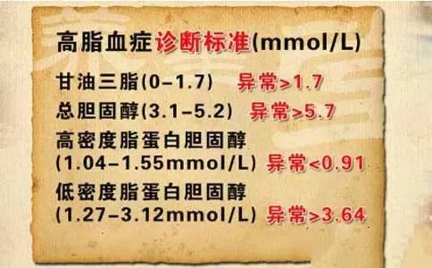 總膽固醇:3.1~5.2mmol/L;甘油三酯:1.7mmol/L以內。