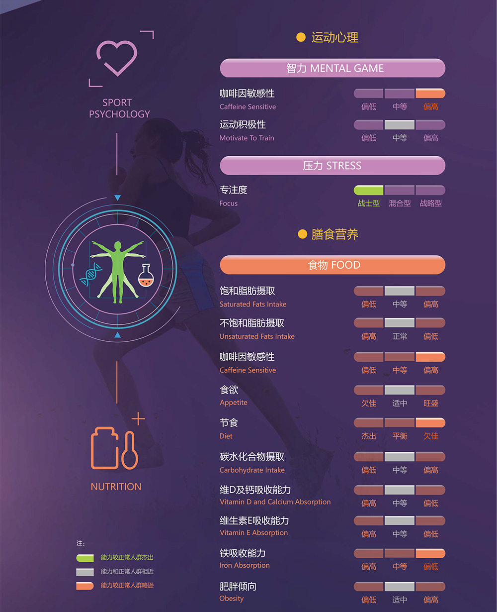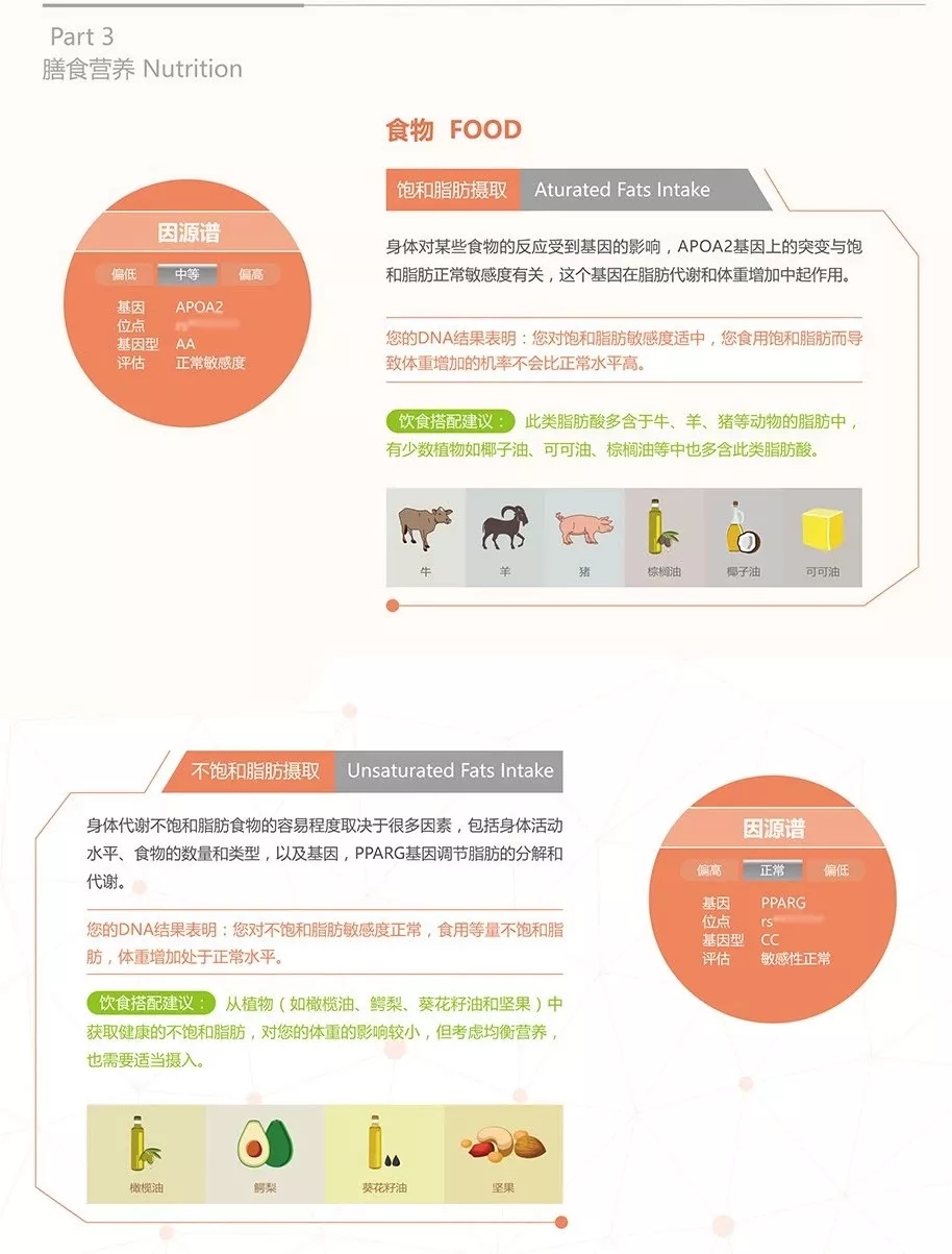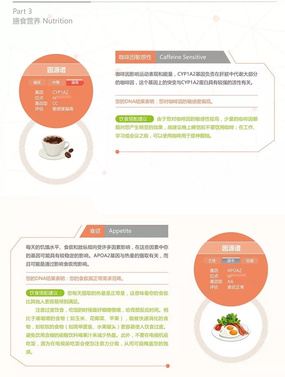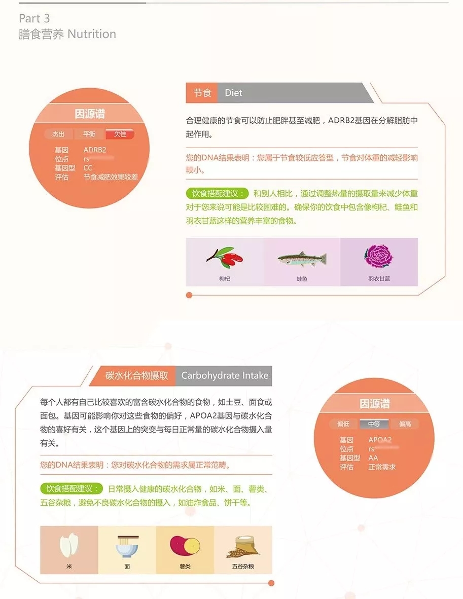 例如我的運動基因檢測報告中,“膳食營養”這個板塊就是這樣顯示的: