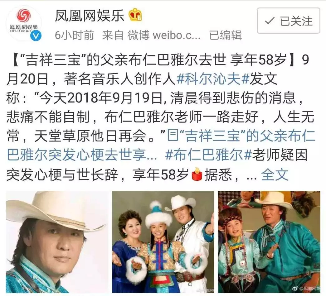 日前,一個不幸的消息傳來,曾經紅遍大江南北的蒙古族著名歌唱家布仁巴雅爾(“吉祥三寶”中的父親)因心肌梗塞去世,享年58歲……