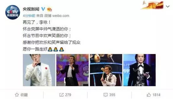 今日,央視發文悼念李詠:願你一路走好。