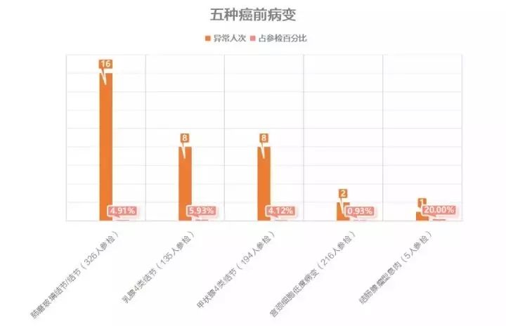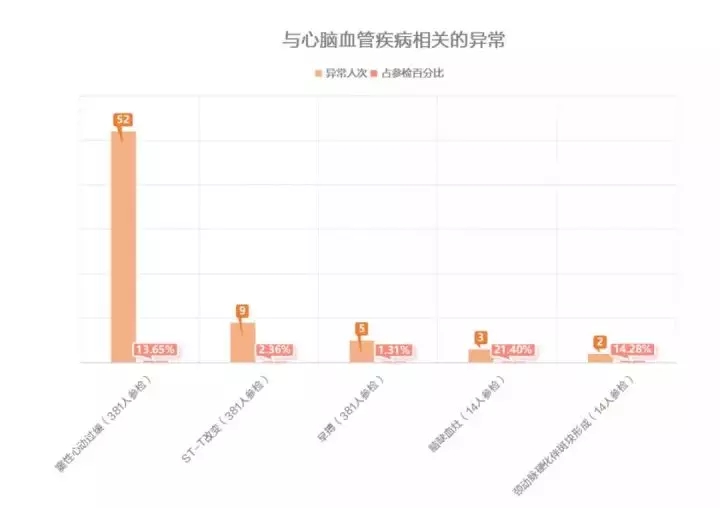 384人體檢,35人查出可疑病灶/癌前病變;每5個人中就有1個高脂血症者;每10個人中就有1.8個脂肪肝;9人查出心髒ST-T改變;2人查出頸動脈硬化伴斑塊形成,3人查出腦部有缺血灶……
