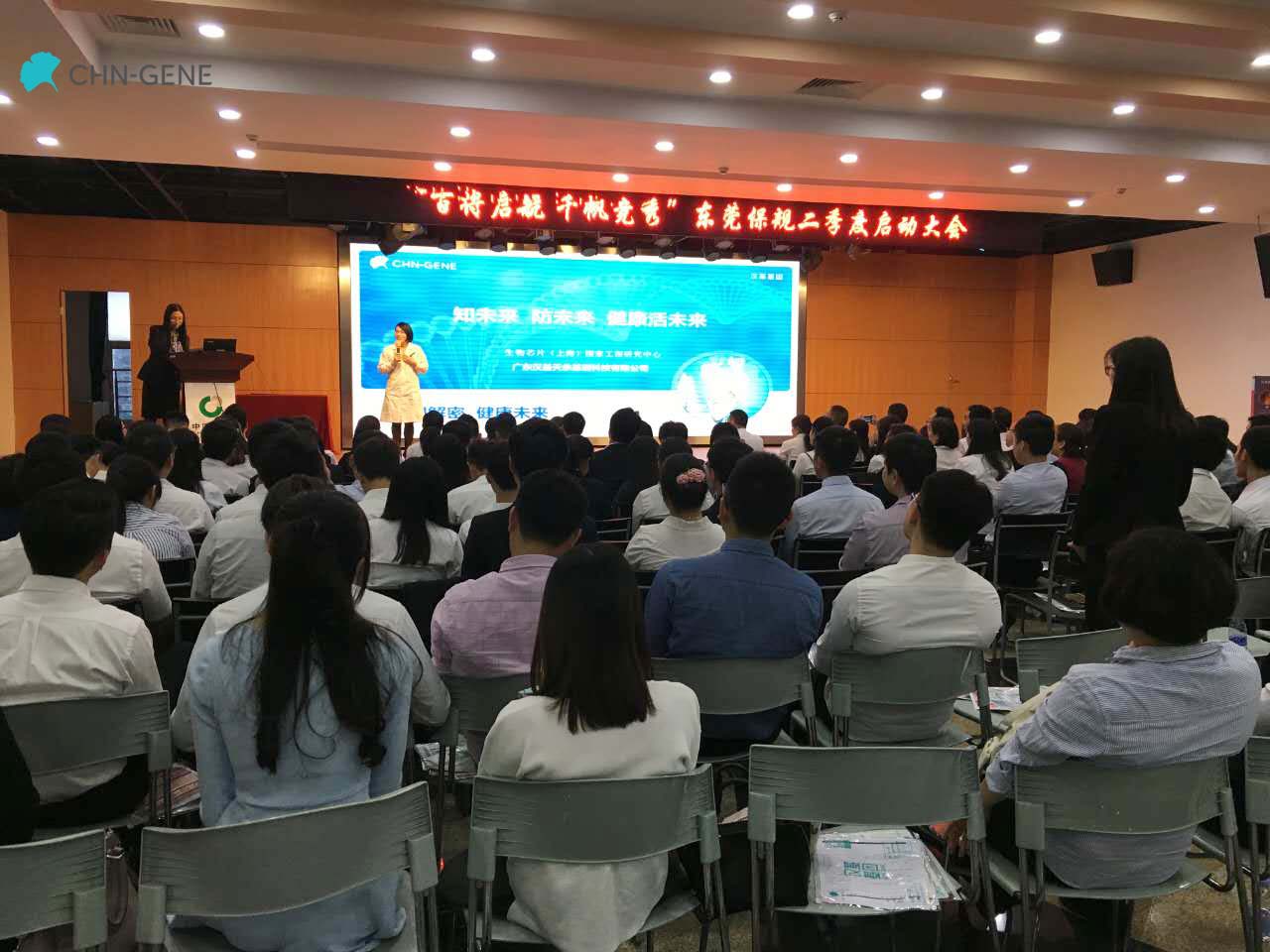 4月5日下午3點在東莞市羅沙區中國人壽進行了一場健康基因知識講座,現場有300人坐席聽講,會上漢...